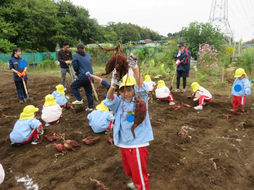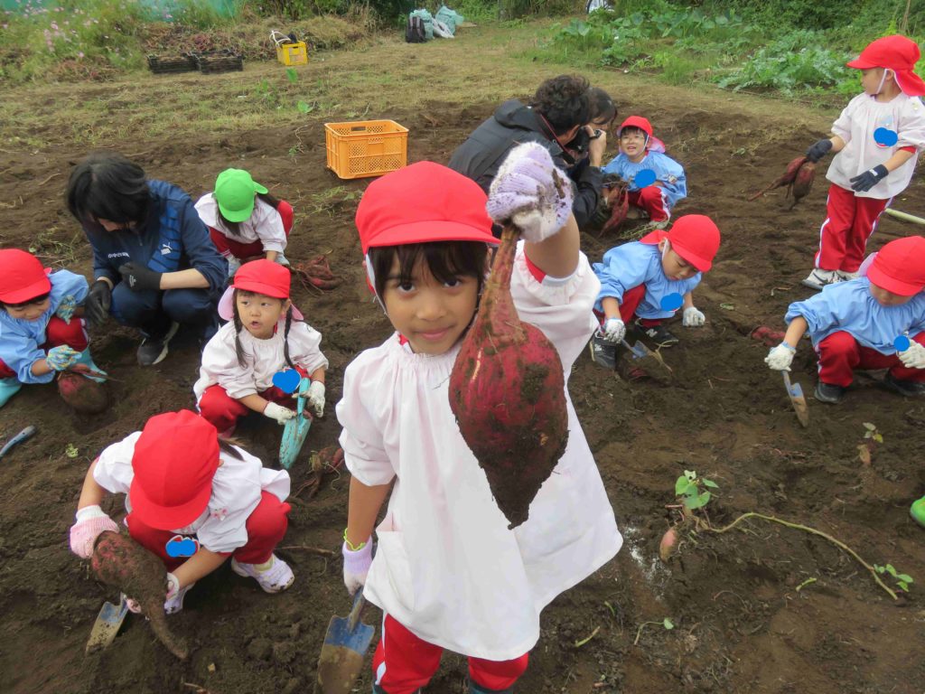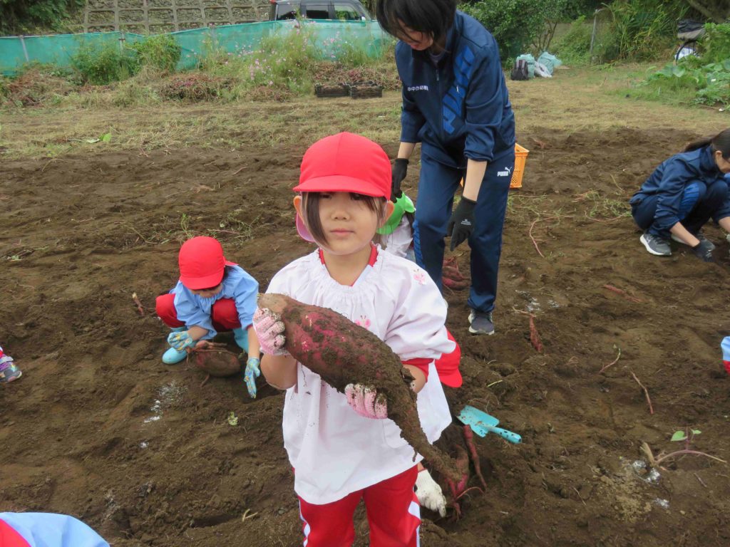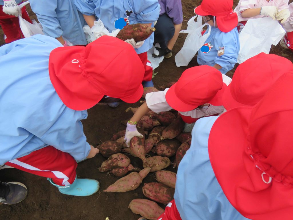 「先生!掘れた!!」「見て、大きい!」「おばけお芋~」等とあちらこちらで大歓声!