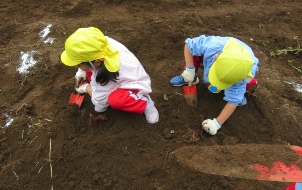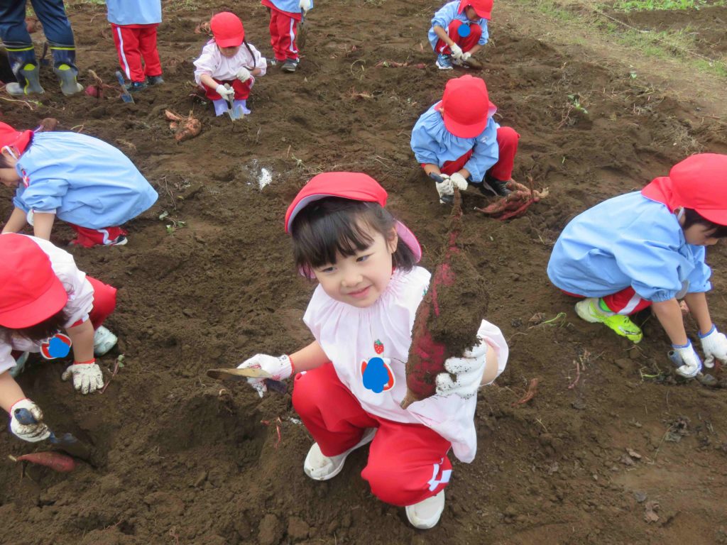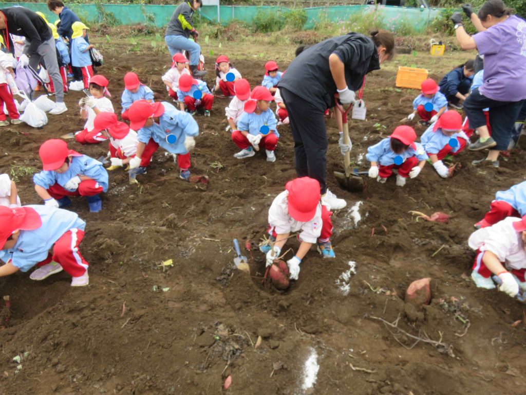 年長組に続いて今日は年中組がお芋堀りを楽しみました。