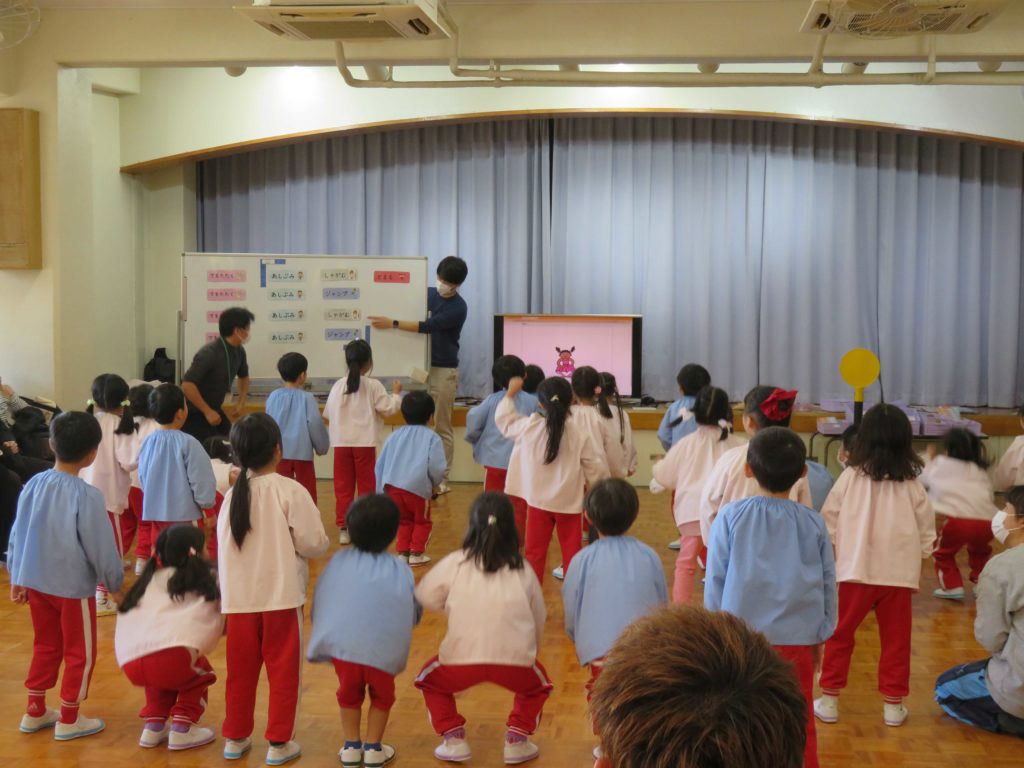 年長児らしく友達と協力して取り組んだり、考え合ったりができるようになりました。参観してくださった保護者様、ありがとうございました。