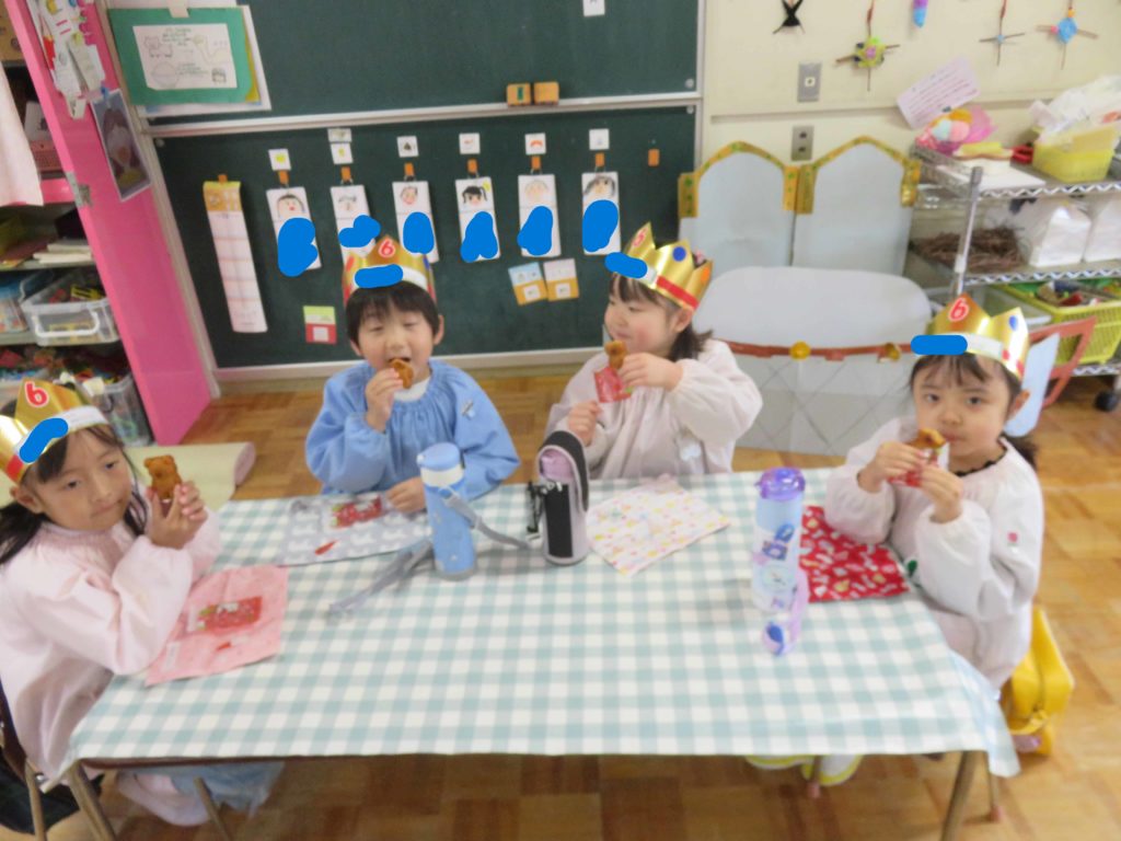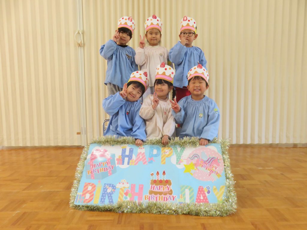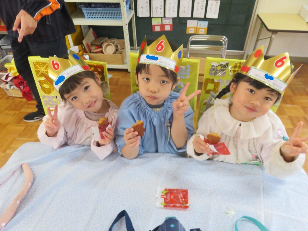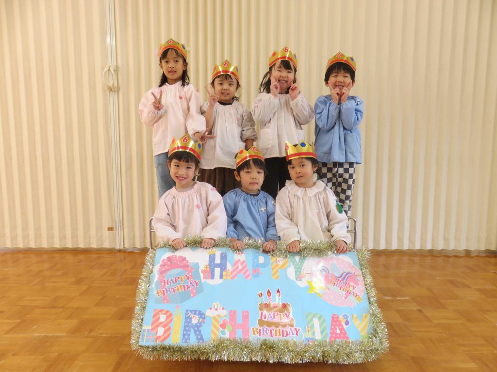 月に一度のお誕生日会、みんなで12月生まれのお友だちをお祝いしました!各保育室でゲ―ムをしたり誕生児にインタビュ―をしたり…先生から手作りの冠をもらっておやつを食べました。
