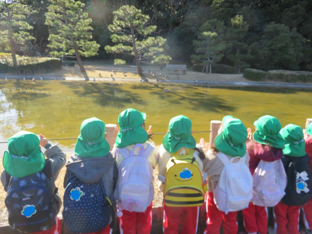 海を見たり、池の鳥を観たり、お弁当を食べたり…ほんの少しの時間でしたが遊具でも遊びました。