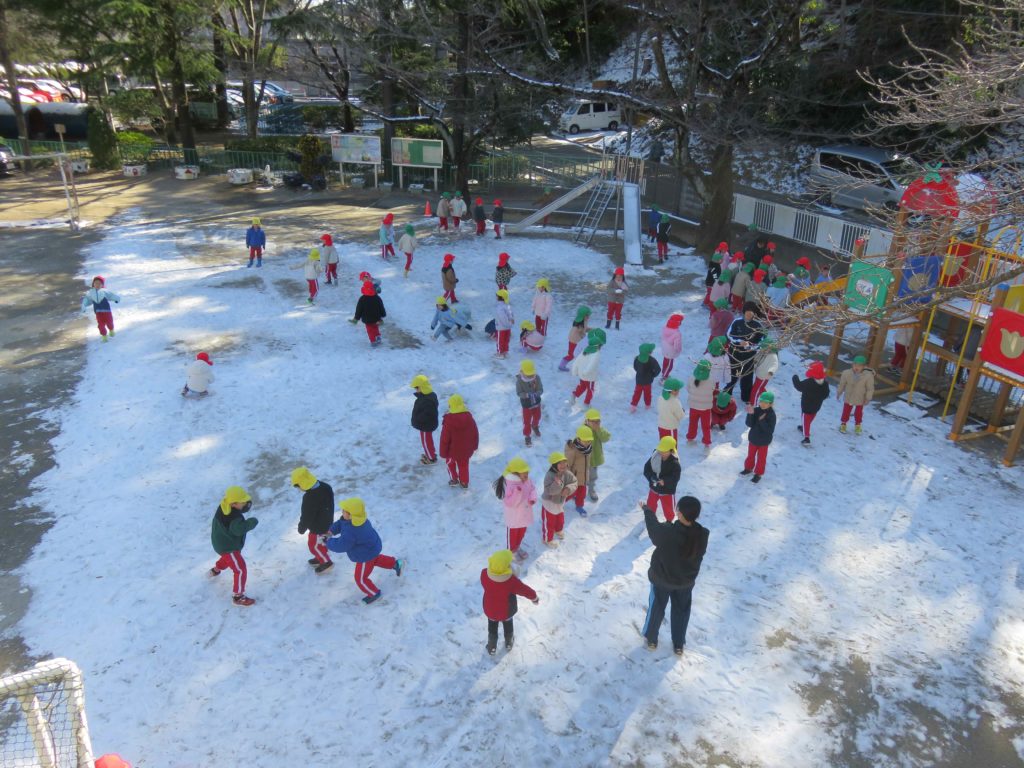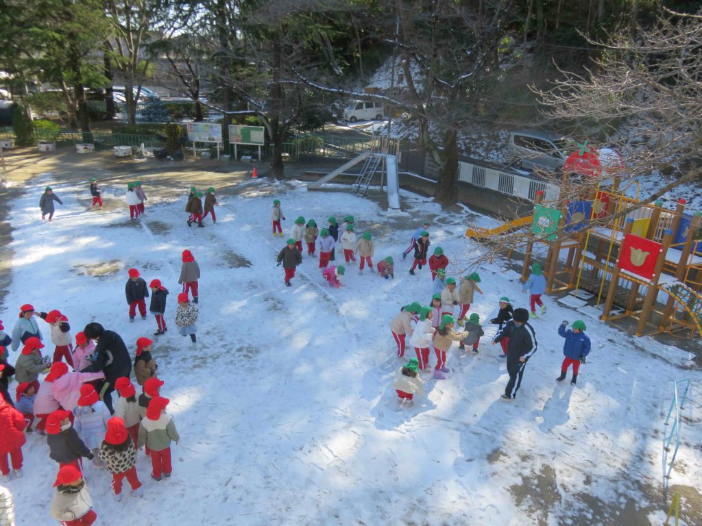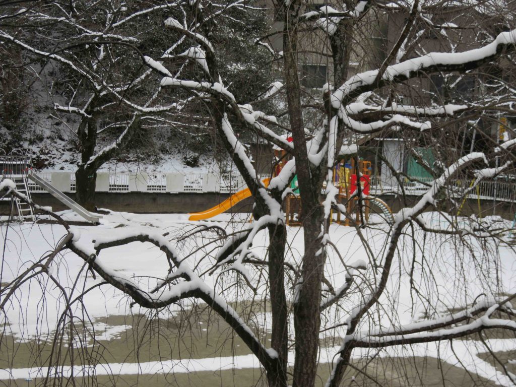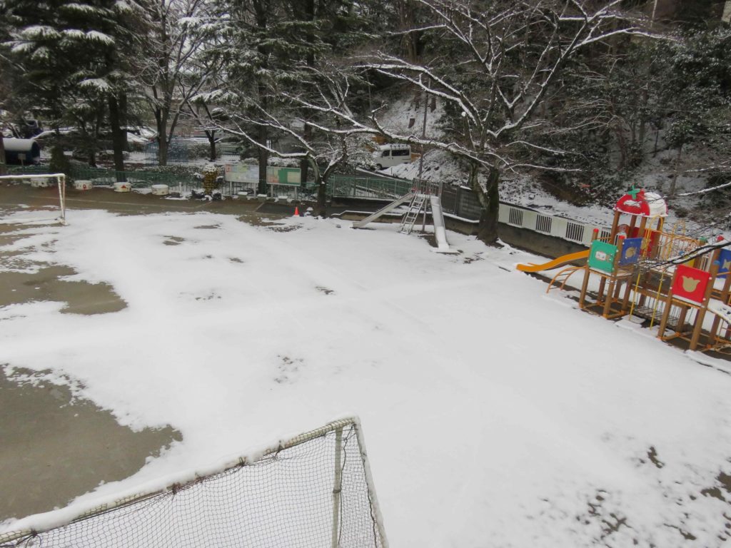 7日から8日にかけて降った雪が園庭に少し積もりました。