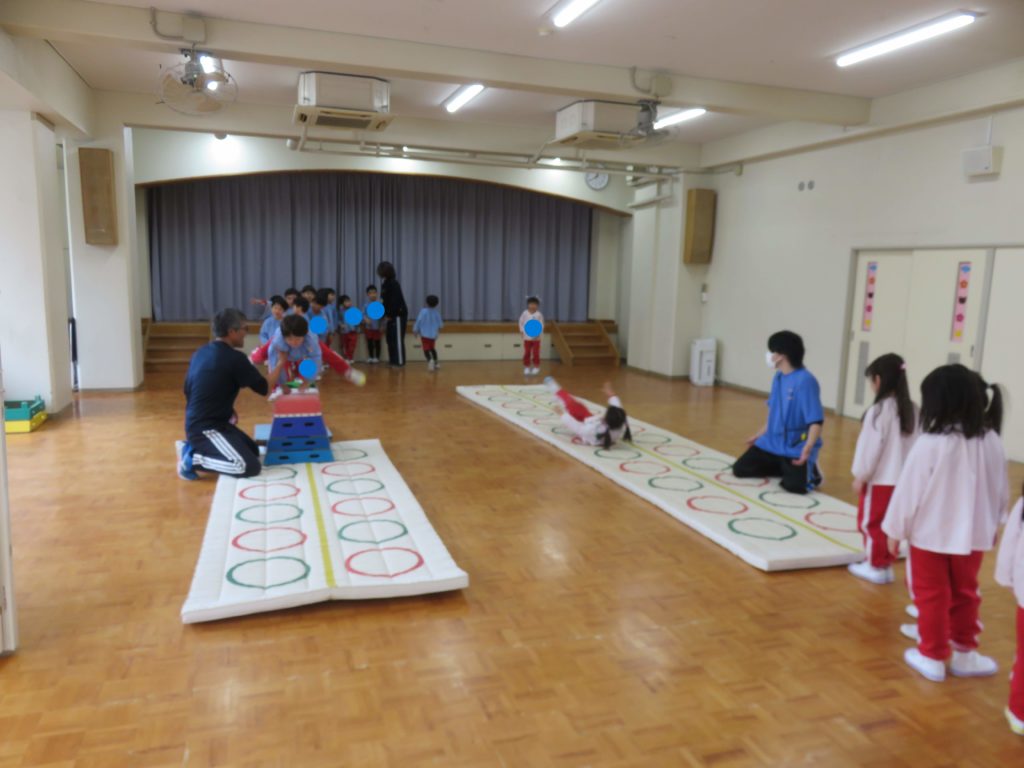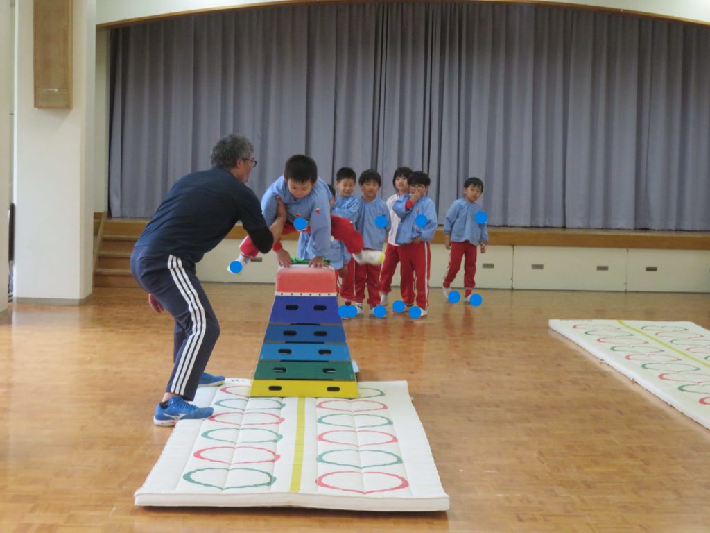 今日で年長組のげんきっずくらぶ(体操指導)は終了です。入園当初のことを思い出しながら話を各クラスでしました。寂しいけれど、教わったことはたくさんあります。今日は今までの活動を振り返りながら遊びました。