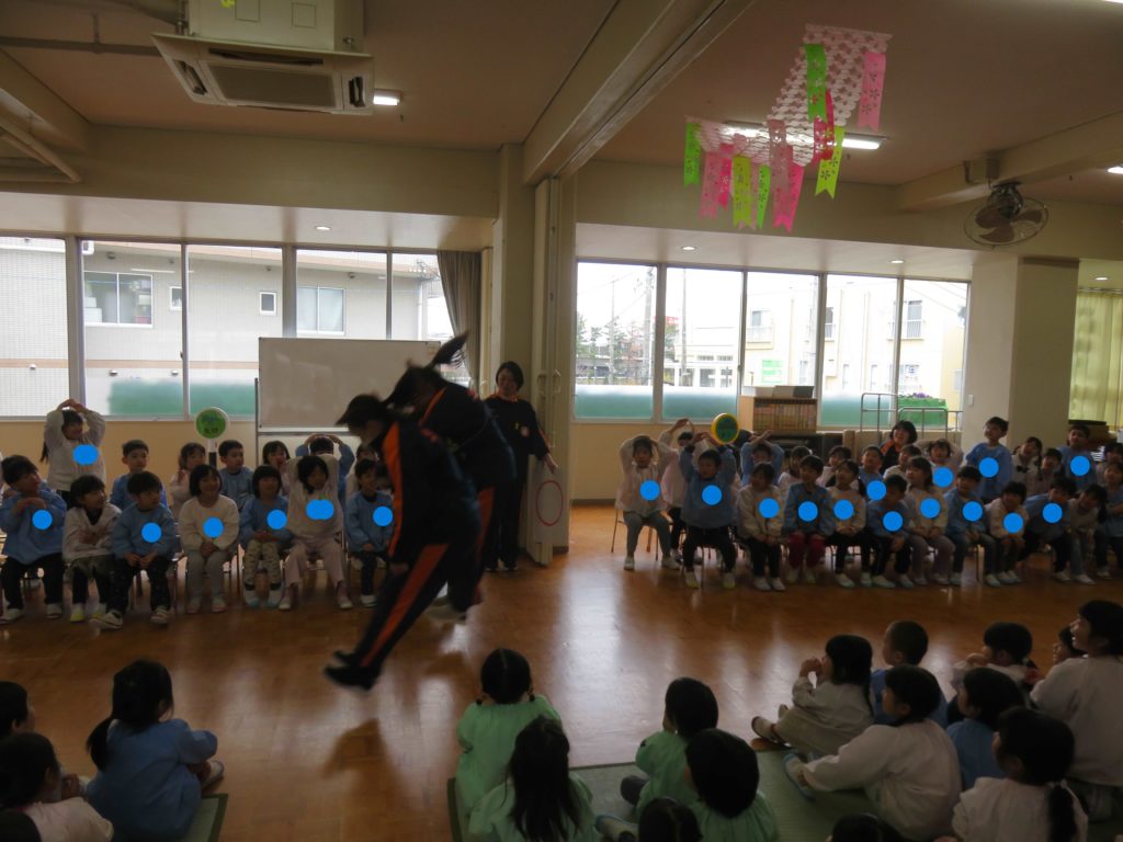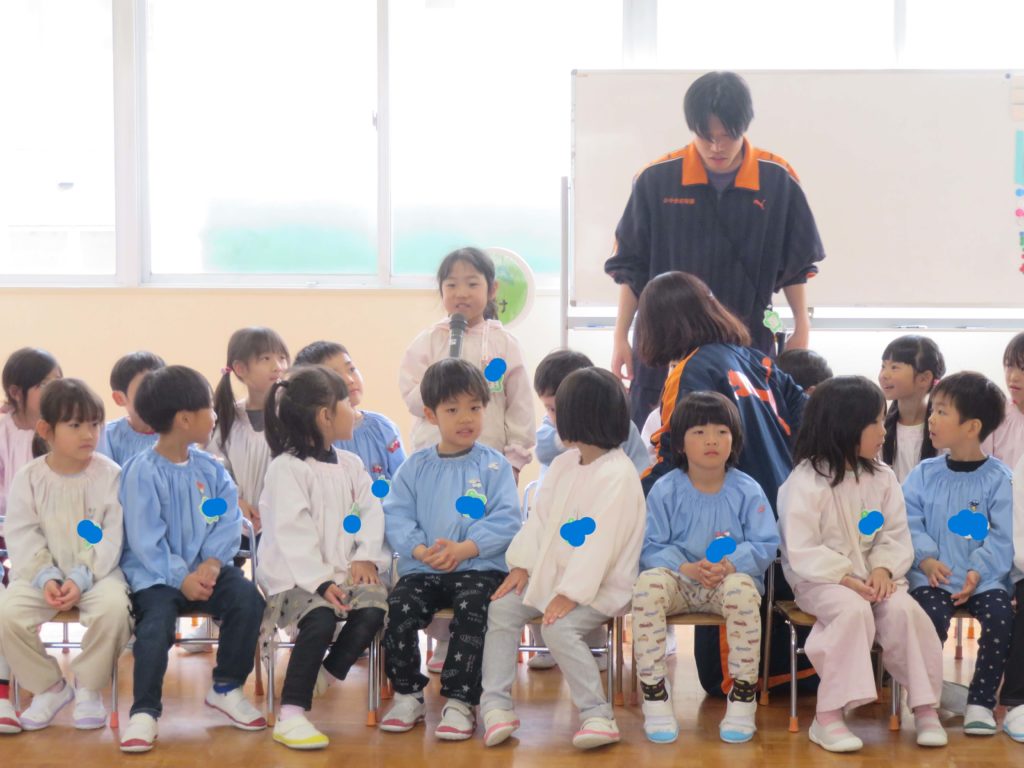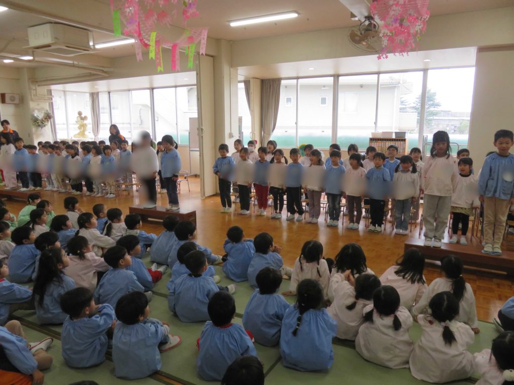 送る会は無事に終了!と思ったら…お弁当を食べた後にもう一度ホールへ年長組が呼ばれました~