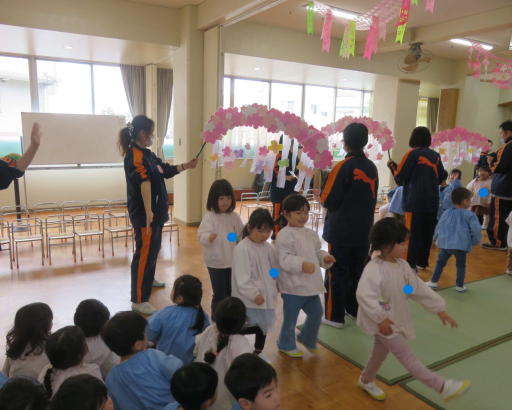 年長組を送る会、大成功!!終了後は年長組以外のみんなもお花のアーチをくぐってお部屋に帰りました!