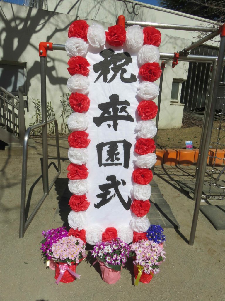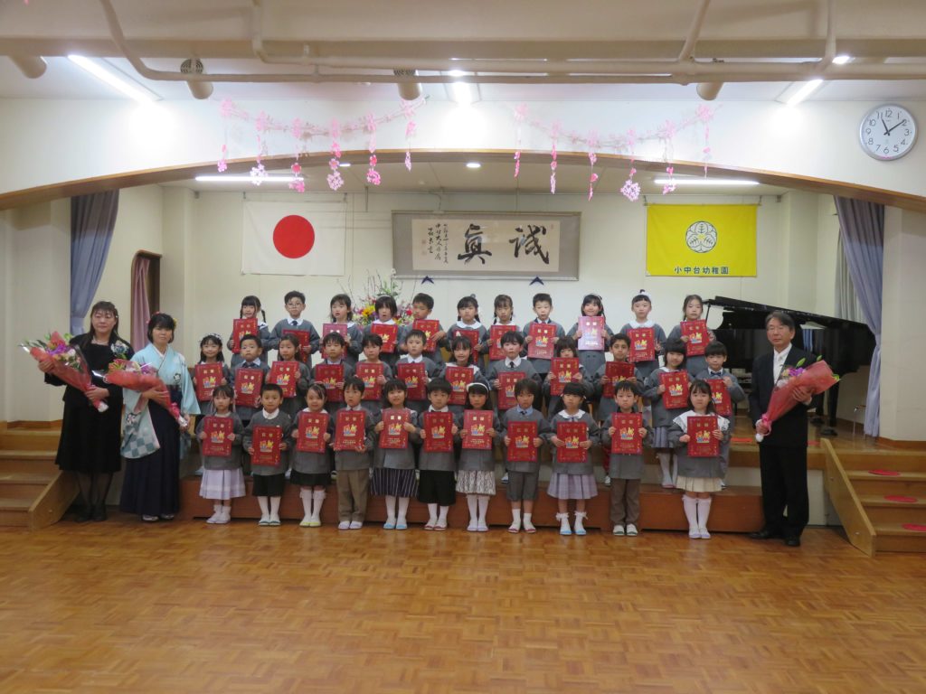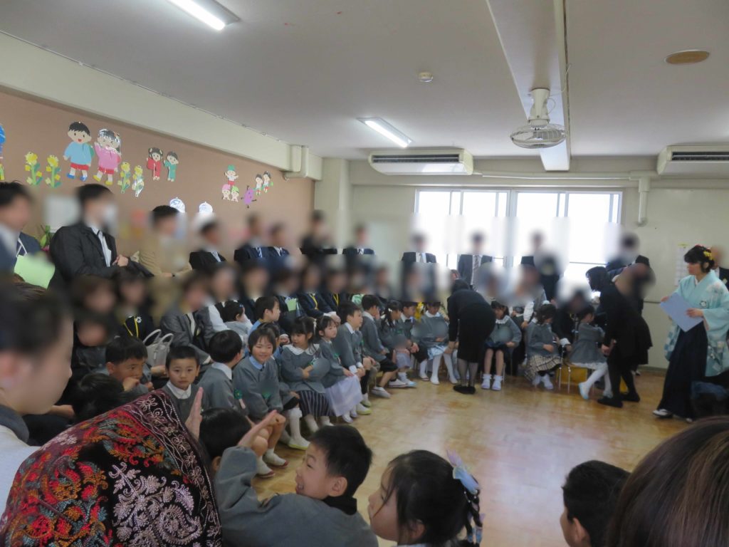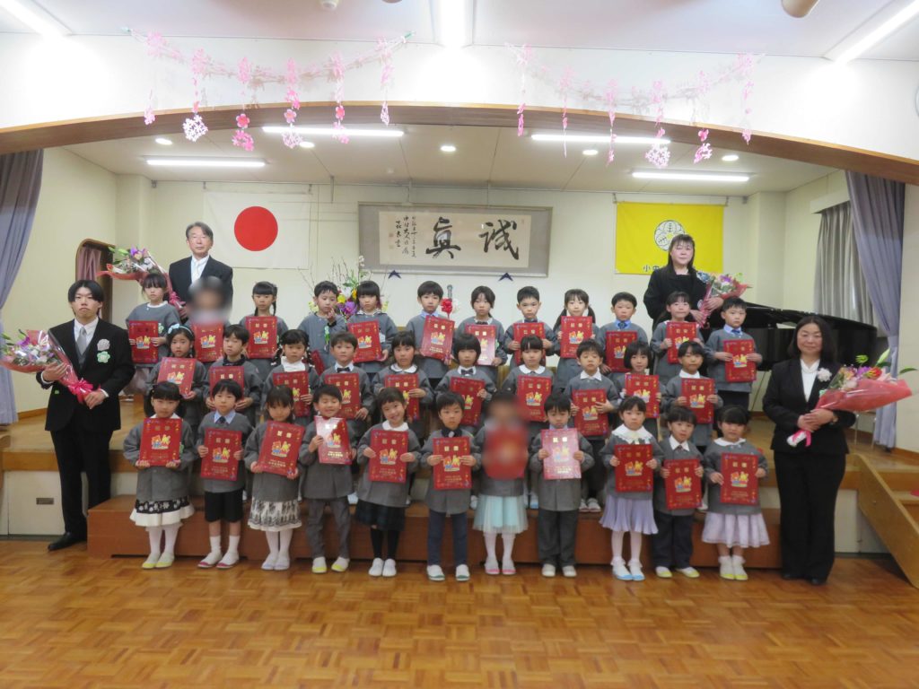 欠席者なく、全員でこの日を迎えられました。今まで幼稚園のリーダーとして本当によく頑張ってくれました。苦手なことにも挑戦する前向きな想いや仲間を思いやる気持ちが育ち、心が強くて温かい立派なお兄さん、お姉さんになりました。キラキラした眼をたくさん見せてくれてどうもありがとう。これからも応援しています!